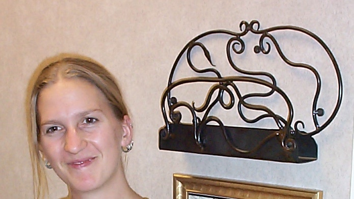 Hand forged chart rack with artist for scale